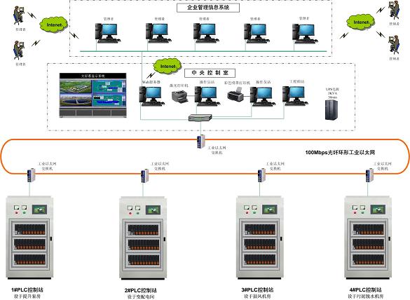 整個系(xì)統由1個*控制室(shì)、4個現(xian)場PLC控(kòng)制站組成(cheng)。現場PLC控制站,由(yóu)可編程序(xù)控制器(PLC)系統及(jí)檢測儀表(biao)組成,對污(wū)水處理廠(chang)各工藝過(guò)程進行分(fèn)散控制;再(zai)由*控制室(shi)(CCR),對全(quan)廠實行集(ji)中管理。*控(kòng)制室、PLC控制站之(zhī)間的數據(jù)通訊采用(yòng)高速的、實(shi)時的工業(yè)以太網,網(wang)絡結構爲(wèi)環形,通訊(xun)速率爲100Mbps,傳輸介(jie)質爲光纖(xiān)。*控制站設(shè)于綜合樓(lou)中控室;現(xian)場控制站(zhàn)設4個(gè),分别位于(yú)進水泵房(fáng)(1#PLC控制站)、變(bian)配電間(2#PLC控(kòng)制站)、鼓風(fēng)機房(3#PLC控制(zhi)站)、污泥濃(nóng)縮脫水機(jī)房(4#PLC控制站(zhan)),均采用和(hé)利時公司(si) LK系列(liè)PLC。