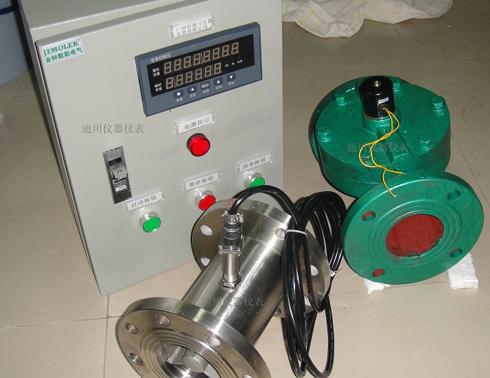流量傳(chuan)感器 (選(xuan)擇對應的口(kou)徑和流量控(kong)制流量範圍(wei) )+泵或電(diàn)磁閥門+定量(liang)控制櫃