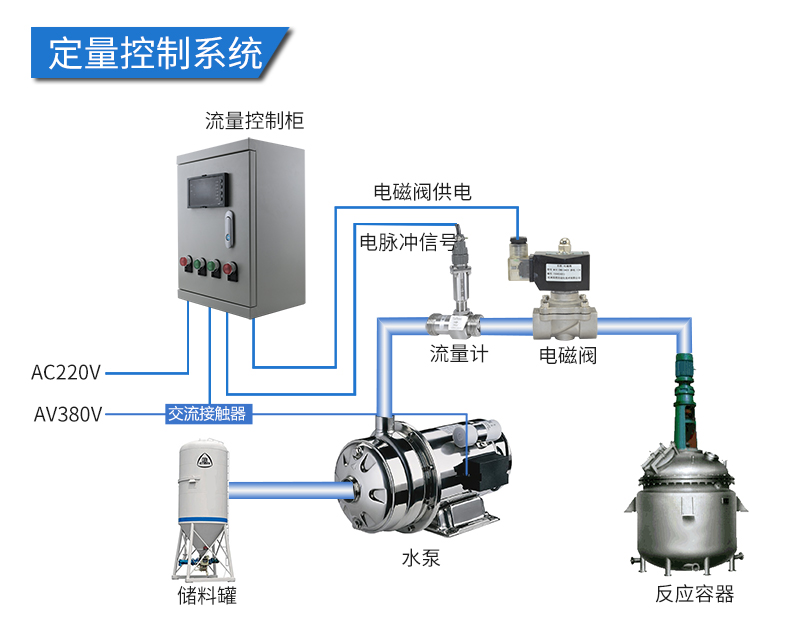 本(běn)方案主要(yao)根據流量(liàng)計反饋給(gěi)定量控制(zhì)儀的脈沖(chòng)流量信号(hao),當 流(liu)量累計流(liú)量達到設(she)定的數值(zhi) ( 定量(liang)值 ) ,定(ding)量控制儀(yi)會給電磁(ci)閥門或泵(bèng)一個開關(guan)信号,已達(da)到對閥門(men)、泵的啓動(dòng)和關閉控(kong)制。實現對(dui)加料的自(zì)動和手📐動(dòng)控制。該系(xi)統精度高(gao),操作簡單(dān),可現場校(xiao)準
