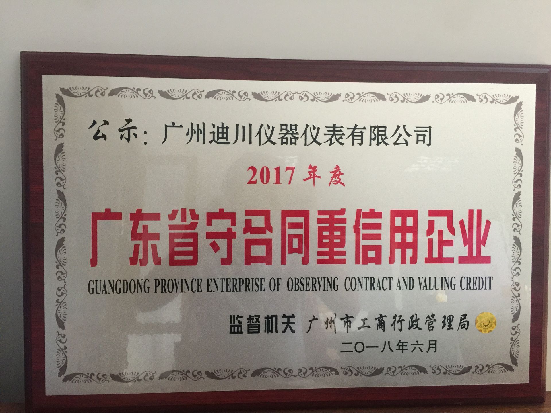 熱烈祝(zhù)賀公司榮(rong)獲2017年度廣(guang)東省守合(hé)同重信企(qǐ)業