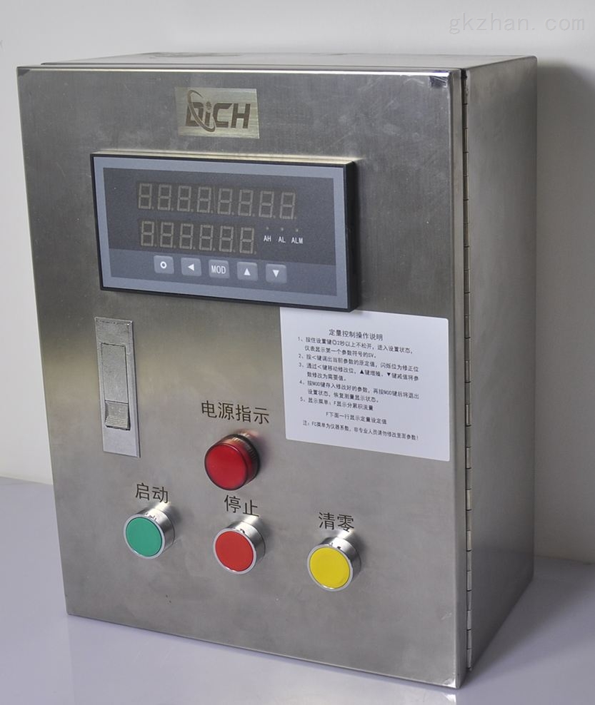 控制(zhì)箱:内含顯(xian)示定量控(kong)制儀、内部(bù)控制線路(lu)及組件、外(wài)部控制按(an)紐和指示(shì)燈等,箱子(zǐ)的标準尺(chi)寸