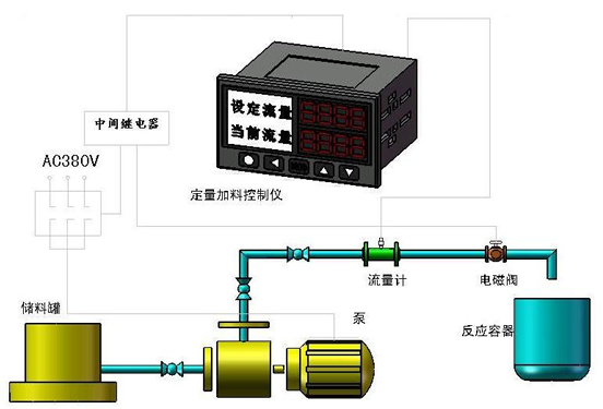 定量控制儀(yí)通過電磁閥進(jìn)行控制的接線(xiàn)示意圖