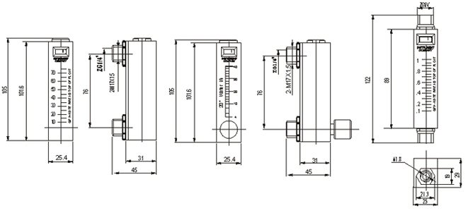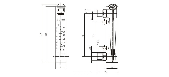 LZB-10 面(miàn)闆式流量計(ji) | LZB-1001M | 0.1~1GPM/0.5~4LPM | 水 | 不帶閥 |