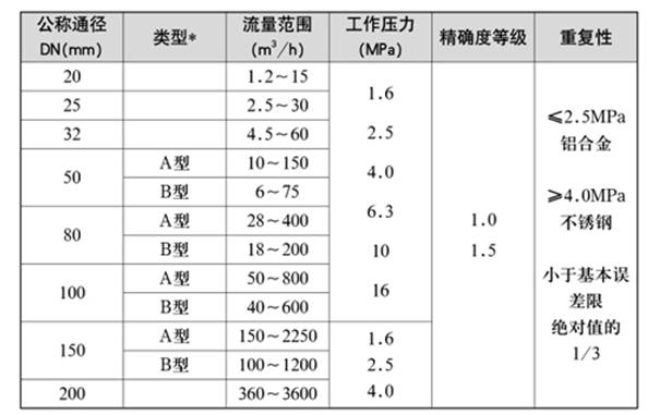 1、流量計規(guī)格、基本參數(shù)和性能指标(biao)(見表1)